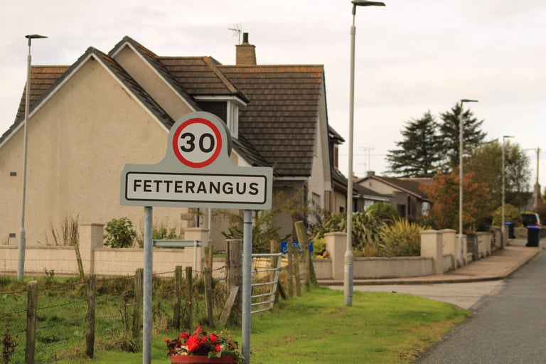 Wikipedia says the current population is 400, and ‘The local area is rich with prehistory and historical features. Somewhat to the south of Fetterangus are a number of prehistoric monuments including Catto Long Barrow, Silver Cairn and many tumuli. In the same vicinity of the Laeca Burn is the point d'appui [place where troops assembled prior to a battle] of historic battles between invading Danes and indigenous Picts. ’